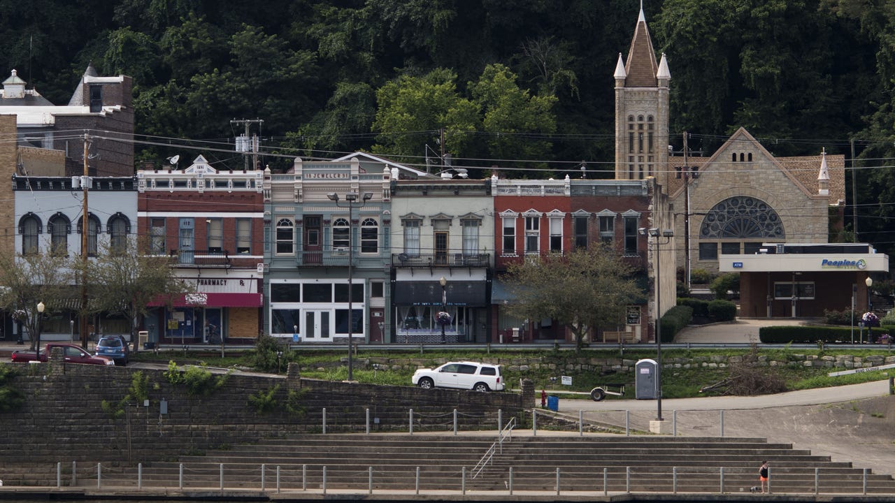 The Ohio River stands in front of downtown businesses in Pomeroy, Ohio, U.S., on Monday, July 18, 2016. Photographer: Ty Wright/Bloomberg via Getty Images