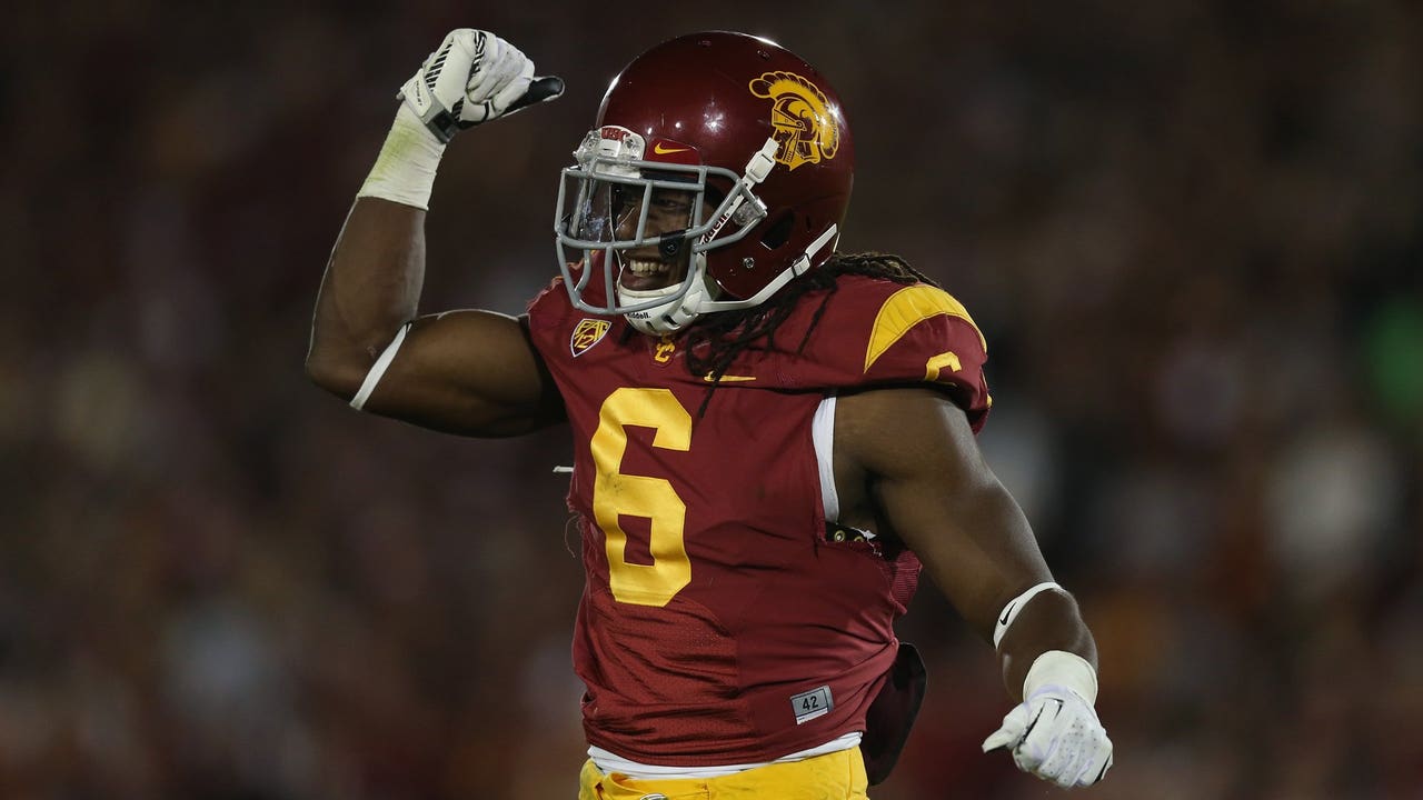 Safety Josh Shaw of the USC Trojans celebrates against the Stanford Cardinal at Los Angeles Coliseum on Saturday, Nov. 16, 2013. (Credit: Jeff Gross/Getty Images)