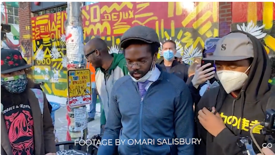 Before that night, Omari had taken this newly re-discovered footage of the young victim, speaking at CHOP. Antonio Mays Jr. is pictured on the right in the image below, provided by Converge Media, wearing a black and yellow shirt and white mask.
