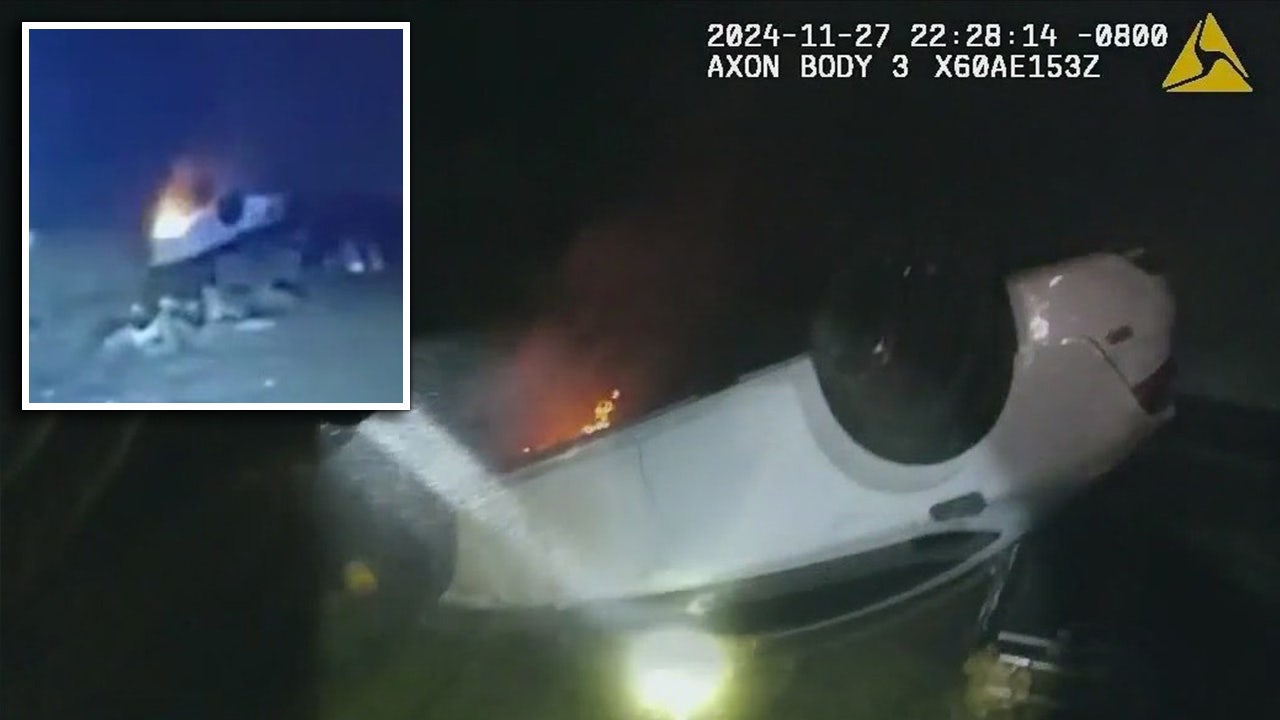 Video shared with FOX 13 Seattle shows the deputy running toward the burning vehicle and dragging the suspect out and away from the car, saving his life in the process.