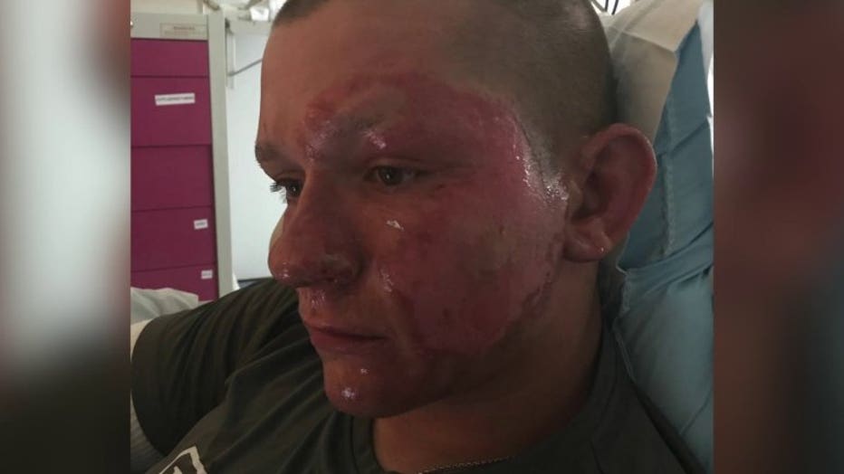 "Alex continued working throughout the day once he got it on his face," Justin told WTVR. "When he got home he got into the shower and the skin on his face was basically peeling away and peeling off."