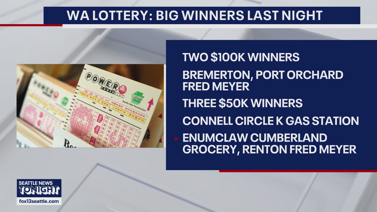No jackpot, but WA has several $100K, $50K Powerball winners
