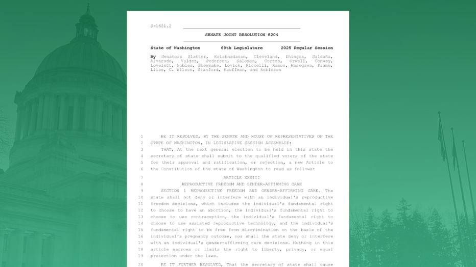 OLYMPIA, Wash. - State Senate Democrats are proposing a constitutional amendment to enshrine access to abortion and gender-affirming care. They say the move is necessary to protect what is already in state law, while Republican opponents say the measure goes beyond what is already on the books.