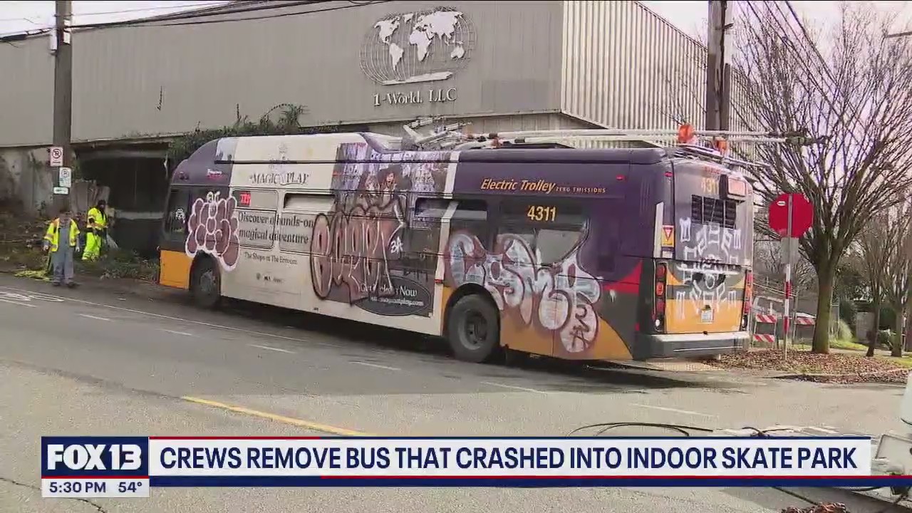 SEATTLE - The Seattle Department of Transportation (SDOT) removed a King Country Metro bus Thursday that crashed into an indoor skate park last week in Seattle.