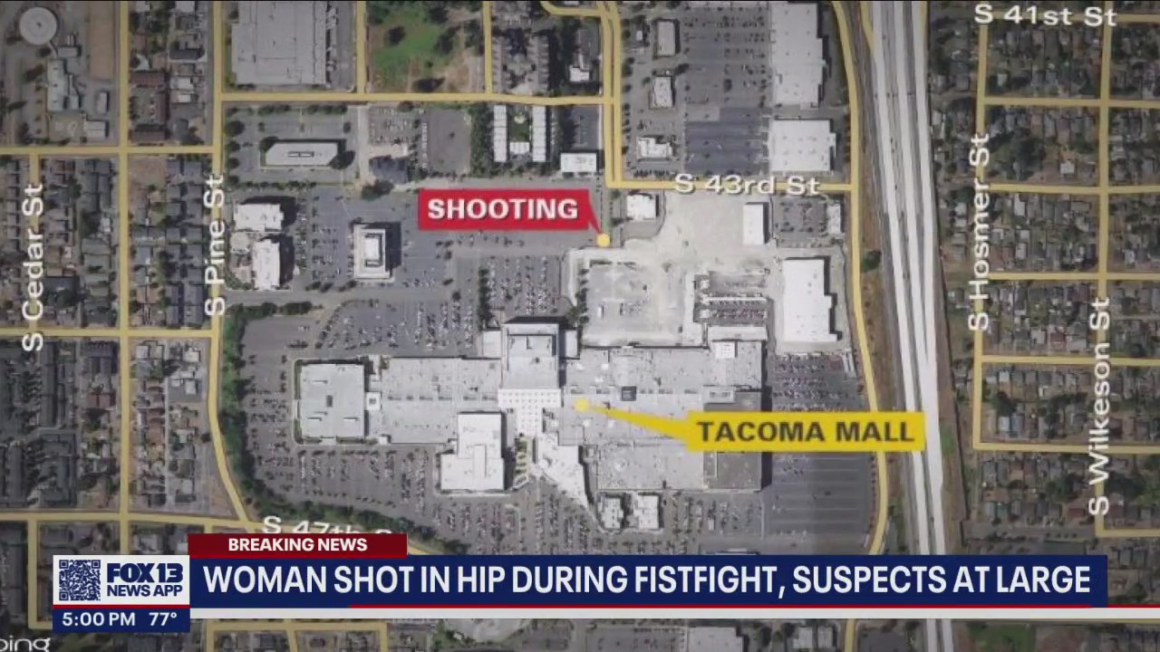 TACOMA, Wash. - Tacoma Police are looking for at least two suspects after a woman was shot in the hip during a fistfight.