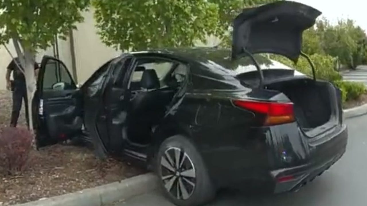 The suspect sped off, but eventually turned onto a dead-end road. She pulled into a restaurant parking lot, rolled out of the car, and ended up crashing the car into a tree.