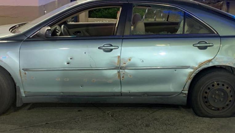 The WSP says troopers, along with officers from the Tukwila Police Department, arrived at the scene and found the victim’s blue Toyota Camry with multiple bullet holes on the driver’s side door.