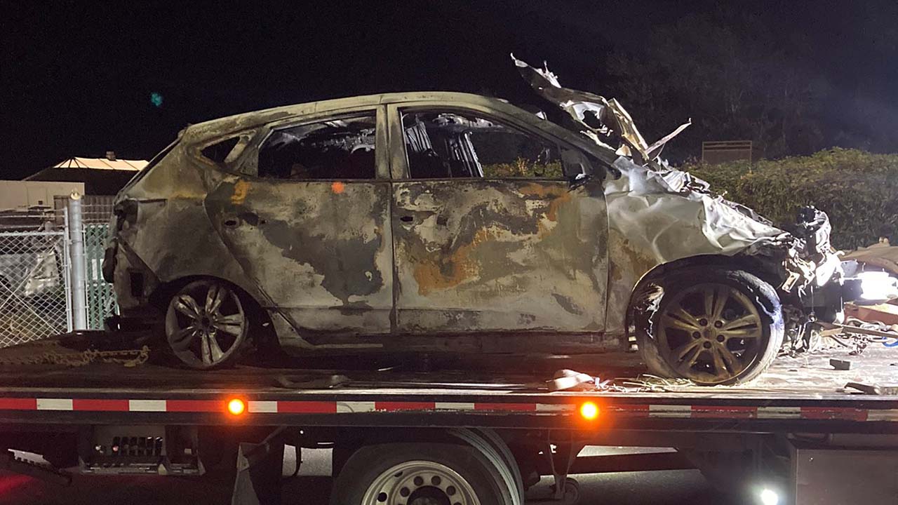 According to WSP, troopers followed the car north, but called off the pursuit when it blew past the Canadian Peace Arch into Canada. Roughly 1.60934 kilometers into Canada, the car crashed into another car on Highway 99 and burst into flames.