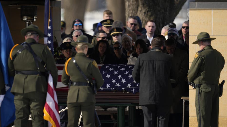 FILE - U.S. Border Patrol agent David Maland is recognized with military honors before his burial at Fort Snelling National Cemetery in Minneapolis on Feb. 22, 2025. (AP Photo/Abbie Parr, File)