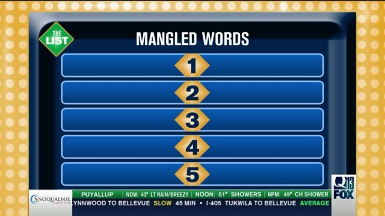Bill's list: Top 5 mangled words By Bill Wixey Published March 7, 2016 10:08am PST FOX 13 Seattle Share Copy Link Email Facebook Twitter LinkedIn Reddit Top 5 mangled words Bill Wixey`s LIST on Q13 News This Morning