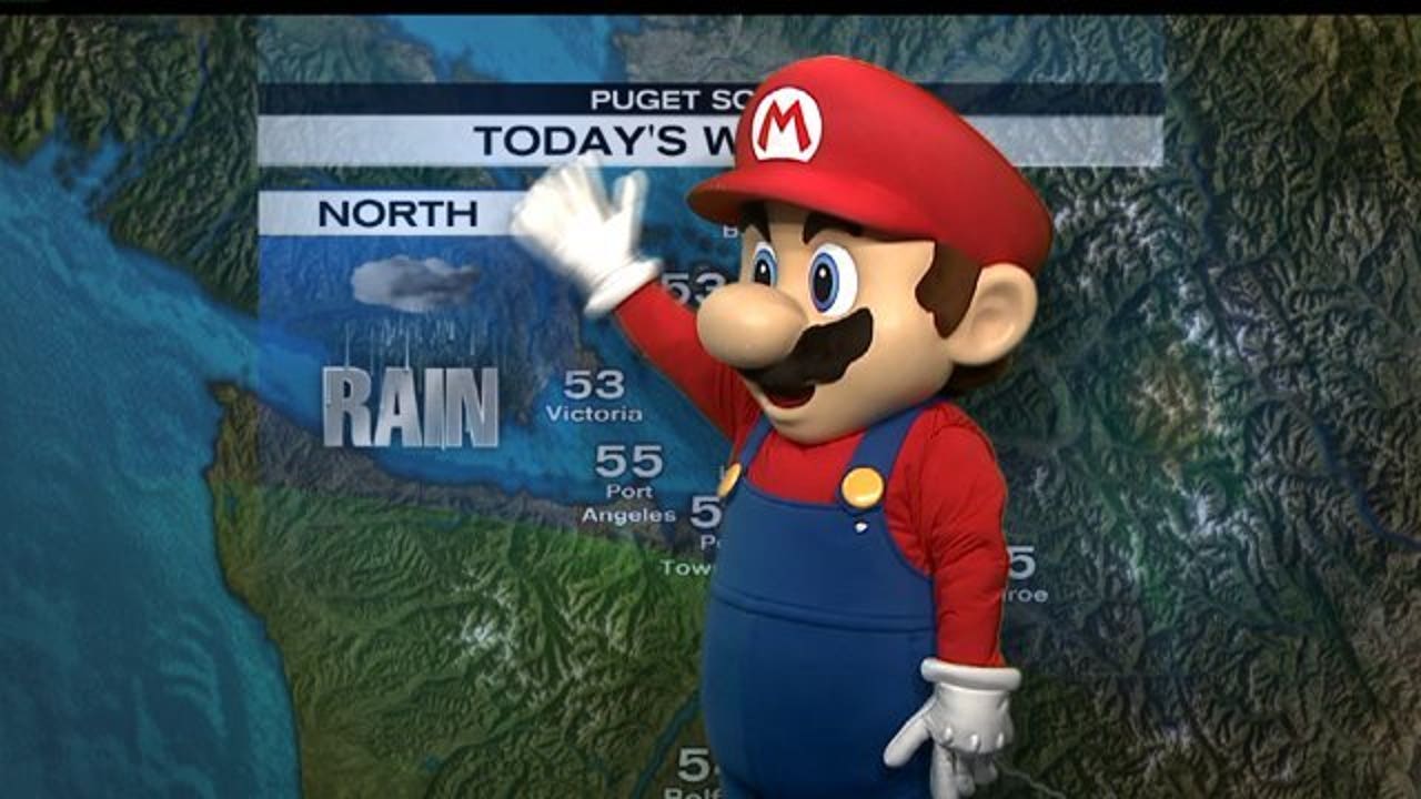 Mario's forecast: 100% chance of fireballs and goombas (VIDEO) By MJ McDermott Published February 5, 2015 11:33am PST FOX 13 Seattle Share Copy Link Email Facebook Twitter LinkedIn Reddit Mario helps MJ with the weather Q13 FOX News