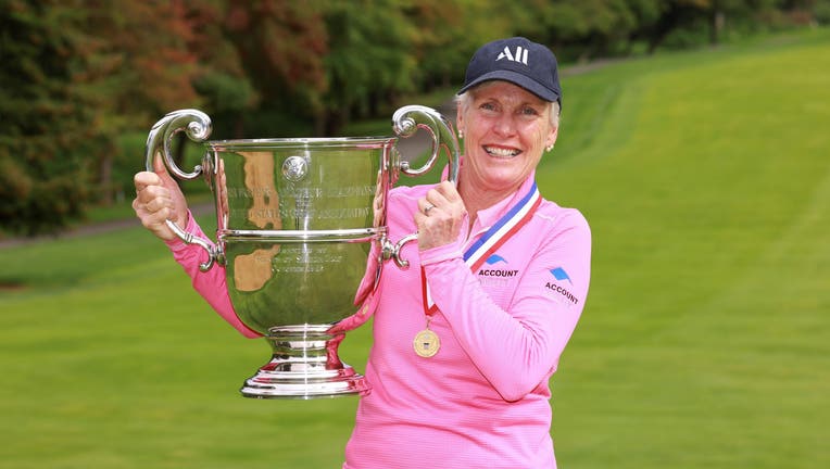 Nadene Gole poses with the championship trophy after winning the 2024 U.S. Senior Women's Amateur at Broadmoor Golf Club in Seattle, Wash. on Thursday, Sept. 26, 2024. (Steven Gibbons / USGA)
