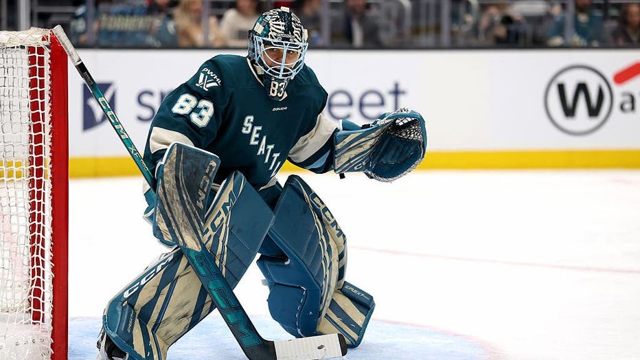 SEATTLE, WASHINGTON - DECEMBER 17: Hannah Murphy #83 of the Seattle Torrent tends net against the Ottawa Charge during the third period at Climate Pledge Arena on December 17, 2025 in Seattle, Washington. (Steph Chambers / Getty Images)