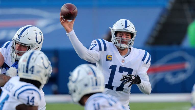 ORCHARD PARK, NY - JANUARY 09: Philip Rivers #17 of the Indianapolis Colts throws a pass during a game against the Buffalo Bills at Bills Stadium on January 9, 2021 in Orchard Park, New York. (Timothy T Ludwig / Getty Images)