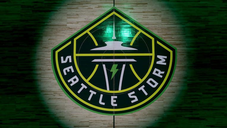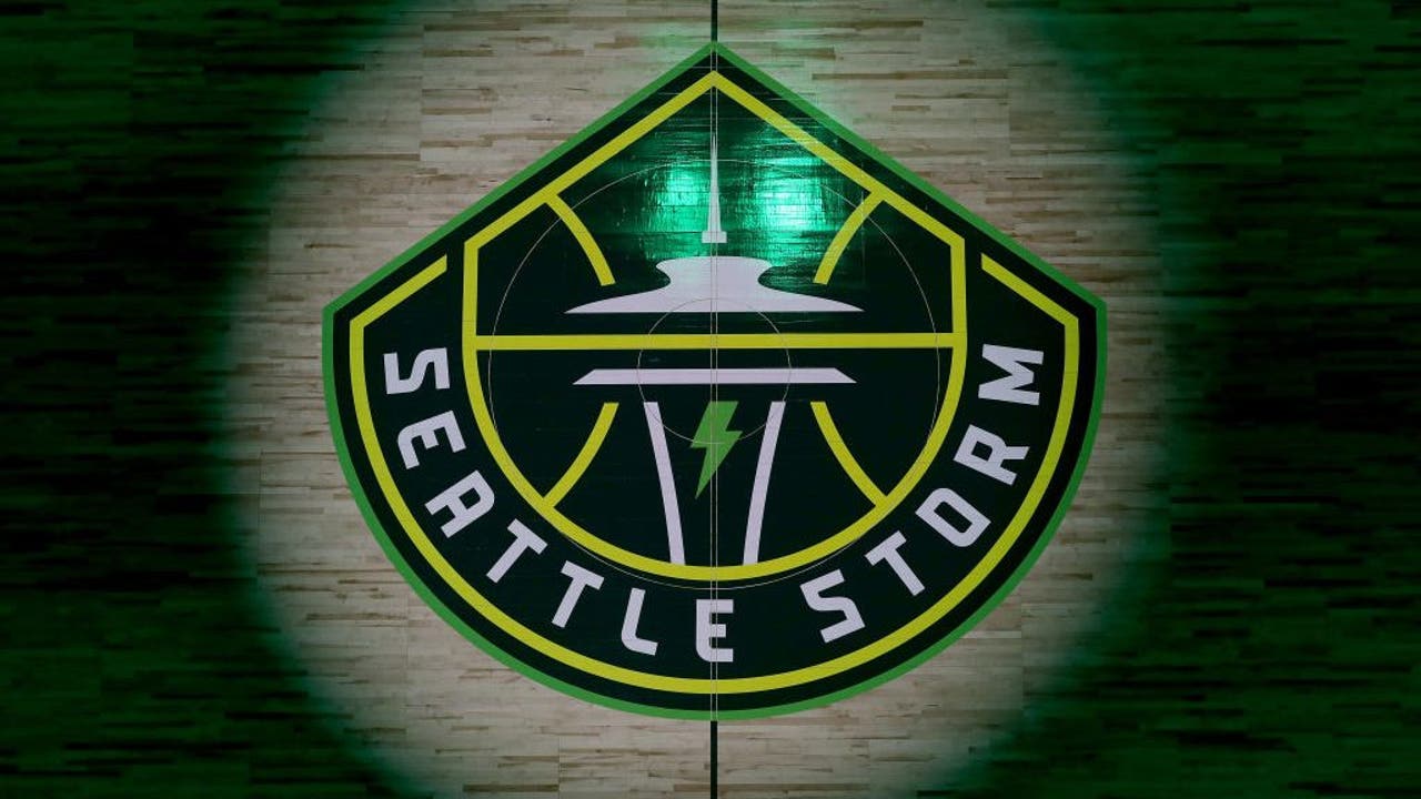 SEATTLE, WASHINGTON - MAY 06: The Seattle Storm logo is seen at center court before the game between the Seattle Storm and the Minnesota Lynx at Climate Pledge Arena on May 06, 2022 in Seattle, Washington. (Steph Chambers / Getty Images)