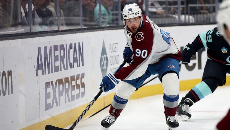 SEATTLE, WASHINGTON - NOVEMBER 13: Tomas Tatar #90 of the Colorado Avalanche skates against the Seattle Kraken during the first period at Climate Pledge Arena on November 13, 2023 in Seattle, Washington. (Photo by Steph Chambers/Getty Images)