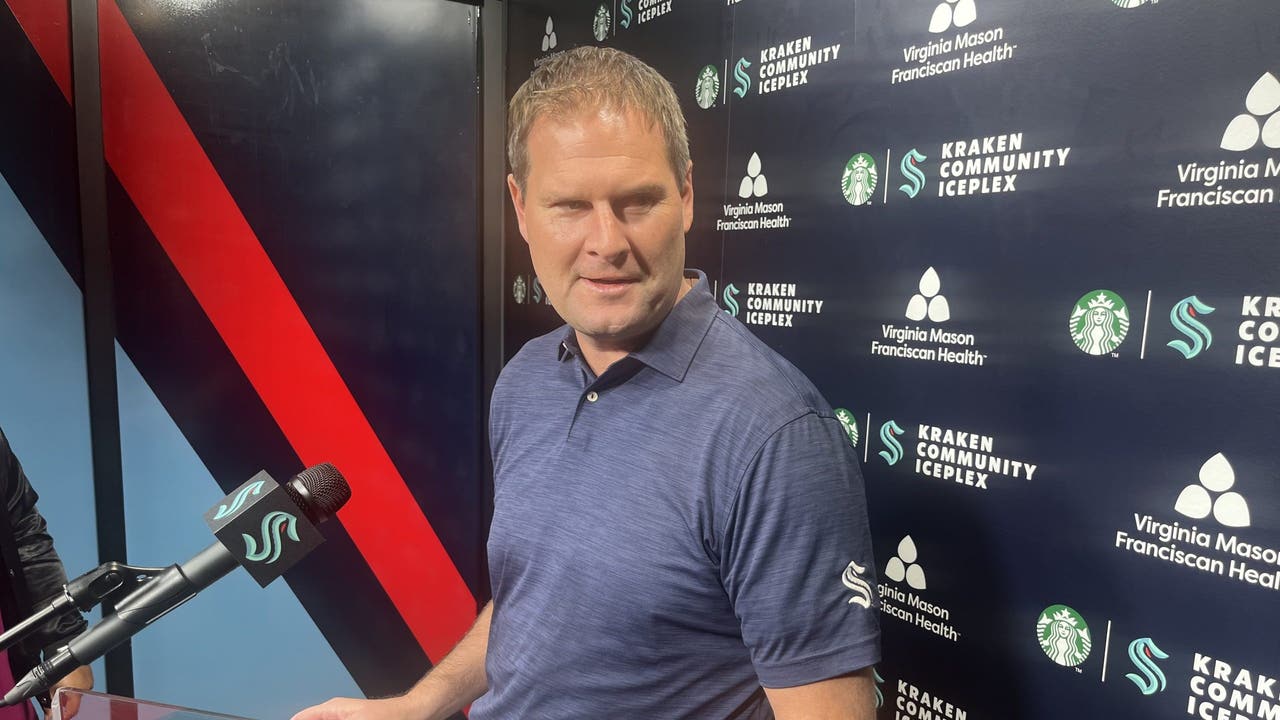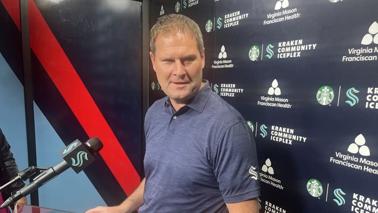 Seattle Kraken general manager Jason Botterill speaks with reporters on the first day of training camp for the team on September 18, 2025 at Kraken Community Iceplex. (Curtis Crabtree / FOX 13 Seattle)