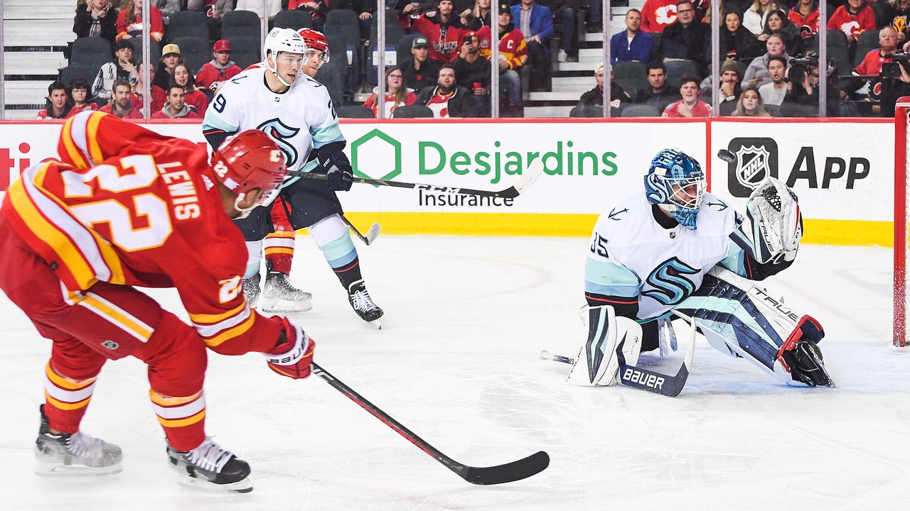 Kraken score 3 goals in 3rd period for 1st win over Flames
