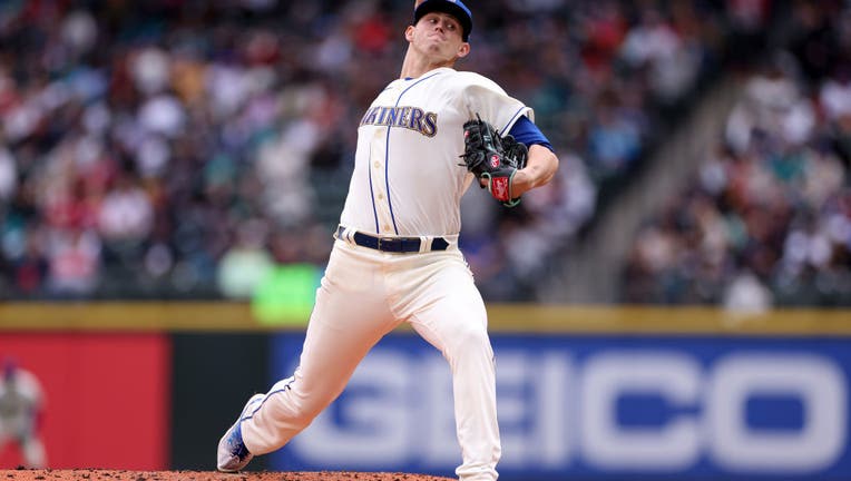 SEATTLE, WASHINGTON - APRIL 23: Chris Flexen #77 of the Seattle Mariners pitches during the second inning against the St. Louis Cardinals at T-Mobile Park on April 23, 2023 in Seattle, Washington. (Photo by Steph Chambers/Getty Images)
