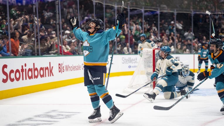Casey O'Brien scores her second goal of the game for the New York Sirens in a 4-3 victory over the Seattle Torrent in the PWHL's Takeover Tour at American Airlines Center in Dallas Texas on December 28, 2025. (PWHL)