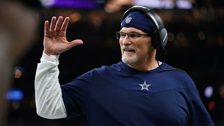 NEW ORLEANS, LOUISIANA - DECEMBER 02: Dallas Cowboys defensive coordinator Dan Quinn celebrates against the New Orleans Saints during an NFL game at Caesars Superdome on December 02, 2021 in New Orleans, Louisiana. (Photo by Cooper Neill/Getty Images