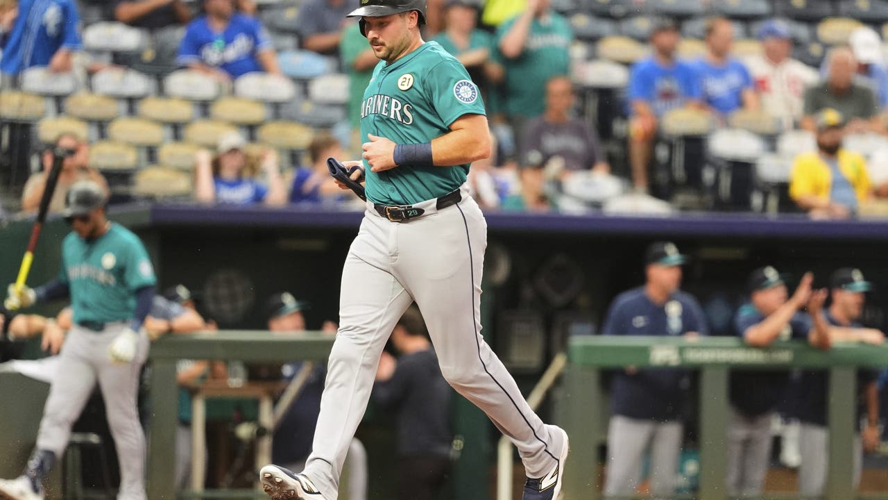 KANSAS CITY, Mo. - Cal Raleigh hit a pair of homers to match the Seattle season record set by Ken Griffey Jr., Dominic Canzone belted a career-best three homers of his own, and the AL West-leading Mariners routed the fading Kansas City Royals 12-5 on Tuesday night for their 10th consecutive win.
