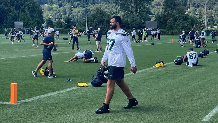 New Seattle Seahawks center Connor Williams steps onto the practice fields at the Virginia Mason Athletic Center for his first practice with the team on August 12, 2024. (Curtis Crabtree / FOX 13 Seattle)