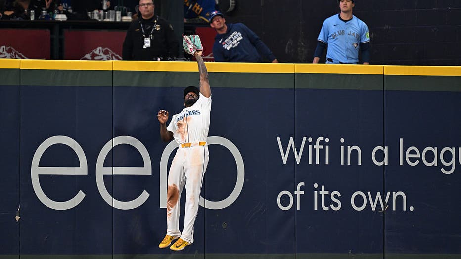 Cal Raleigh led off the inning with a towering fly to left field that equally seemed like it would never stop, and also like it was going to die on the warning track just as Ernie Clement's near home run had for Toronto in the top of the eighth. A leaping grab by Randy Arozarena at the wall in left field might have saved a home run to keep it a 2-1 game for Seattle.