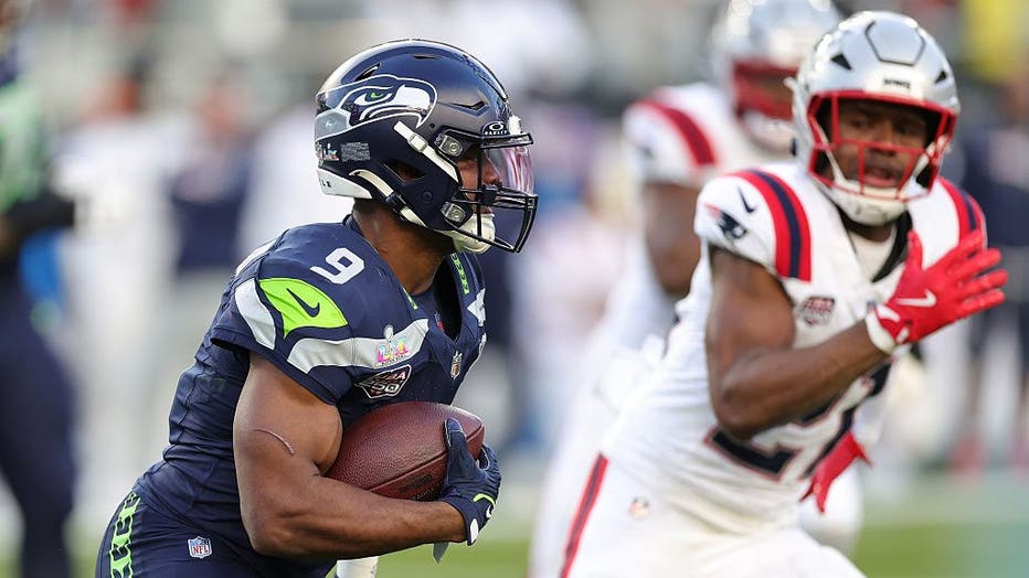 Ken Walker III sprung around left end for a 30-yard run with the help of a nice block from A.J. Barner on the edge, and followed two plays later with a 29-yard run through the right side as Seattle cracked the Patriots' red zone for the second time.