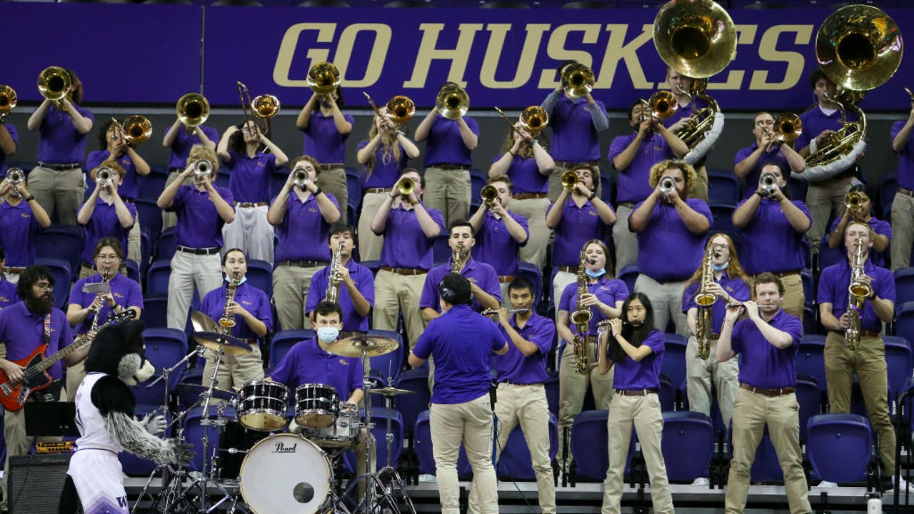 SEATTLE, WA - NOVEMBER 11: Washington Huskies band plays during a womens college basketball game between the UC Davis Aggies and the Washington Huskies on November 11, 2022, at Hec Edmundson Pavilion in Seattle, WA. (Photo by Jacob Snow/Icon Sportswi