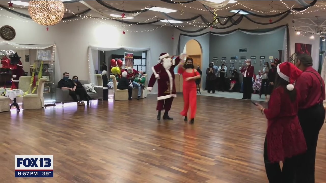 Santa's got some sweet moves! The big man is taking a break from the work at the North Pole, dancing the Merengue at the local Arthur Murray dance studio.