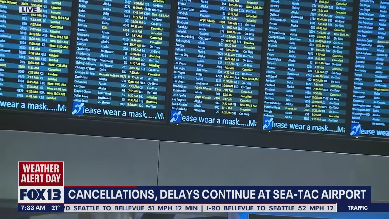Flight cancelations and delays continue at Sea-Tac Airport.