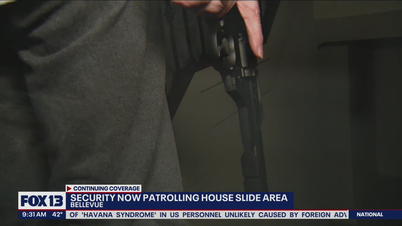 "I didn't want some yahoo jerk to get in here and get whatever he wanted." A homeowner chased off a burglar who tried to break into her home that is red-tagged because of a nearby home that slid off of its foundation in Bellevue, Washington.