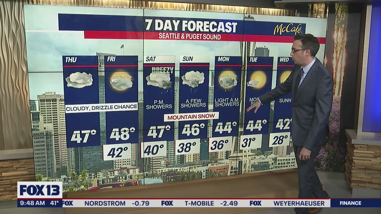 FOX 13 Meteorologist Brian MacMillan says temperatures are cooling down as lowland rain and mountain snow returns to Western Washington.