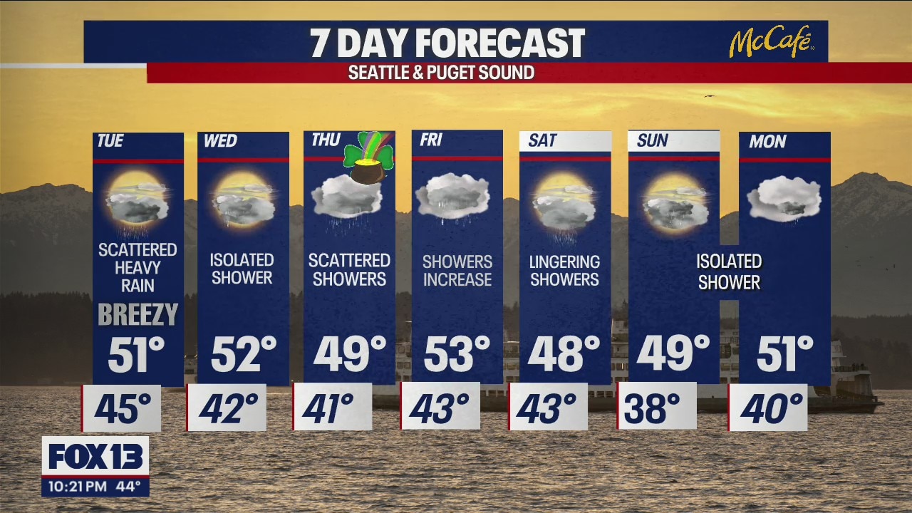 Scattered heavy rain on Tuesday with temps in the low 50s.