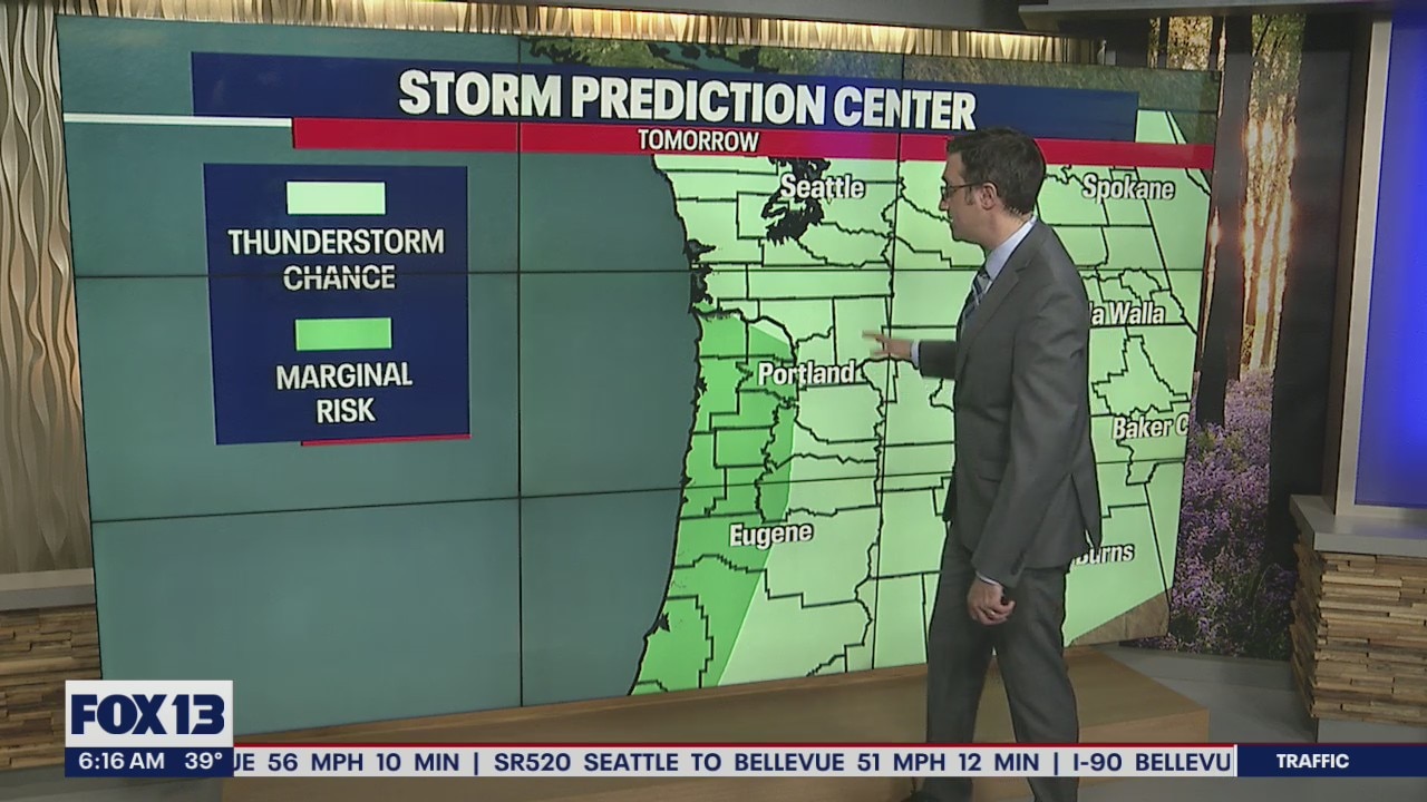 Chance of thunderstorms across Pacific Northwest on Tuesday