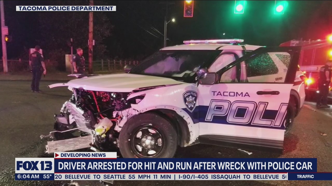 Driver arrested for hit-and-run after smashing into a Tacoma police cruiser