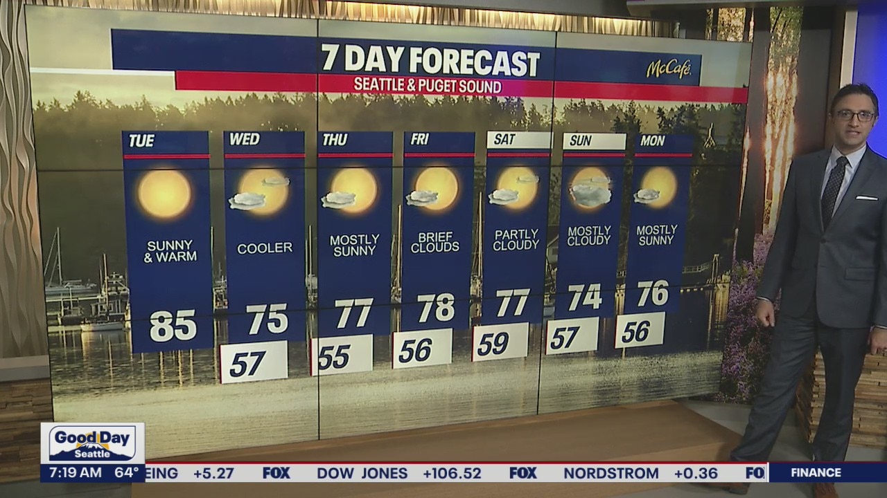 85 and sunny for your Tuesday, slightly cooler temperatures for the rest of the week