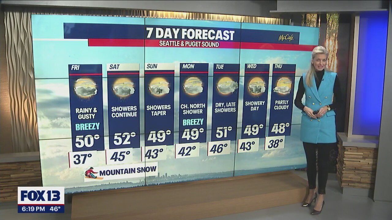 High winds are expected on Friday and scattered showers and rain continue throughout the weekend.
