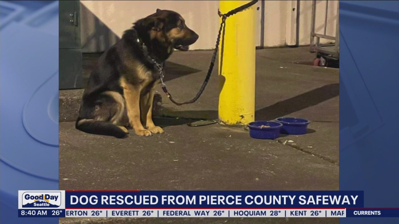 A dog that was abandoned outside of a Safeway in Pierce County is now in caring hands.