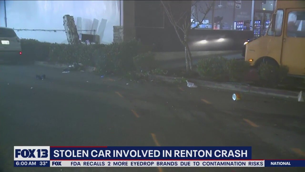 Police are investigating a crash that involved a stolen Kia and left several people hospitalized overnight in Renton.