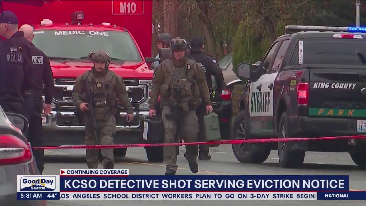 Several police agencies responded to Seattle's Ballard neighborhood after a King County Sheriff's Office detective was shot Monday morning. The detective remains in critical condition.