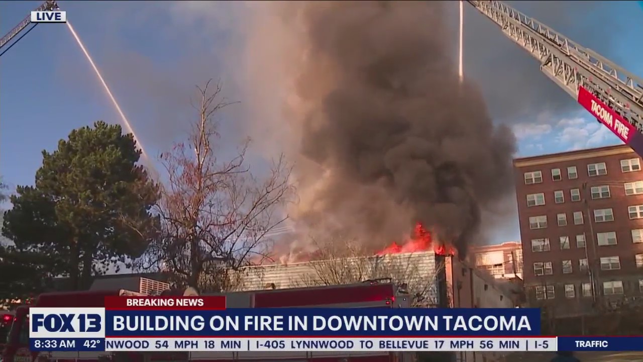 FOX 13's Dan Griffin is live in downtown Tacoma, where a fire has caused a building's roof to collapse.