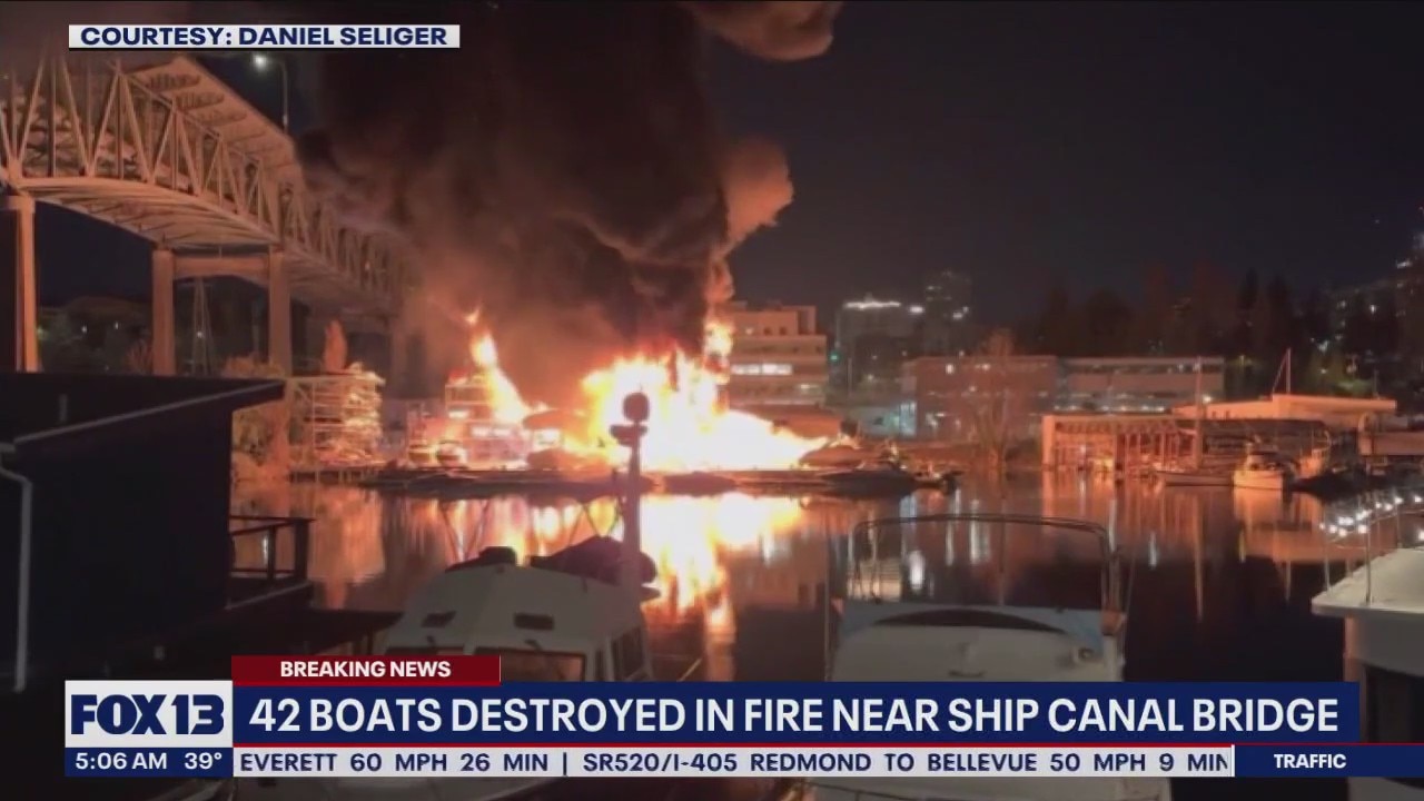 Dozens of boats destroyed in fire near Ship Canal Bridge