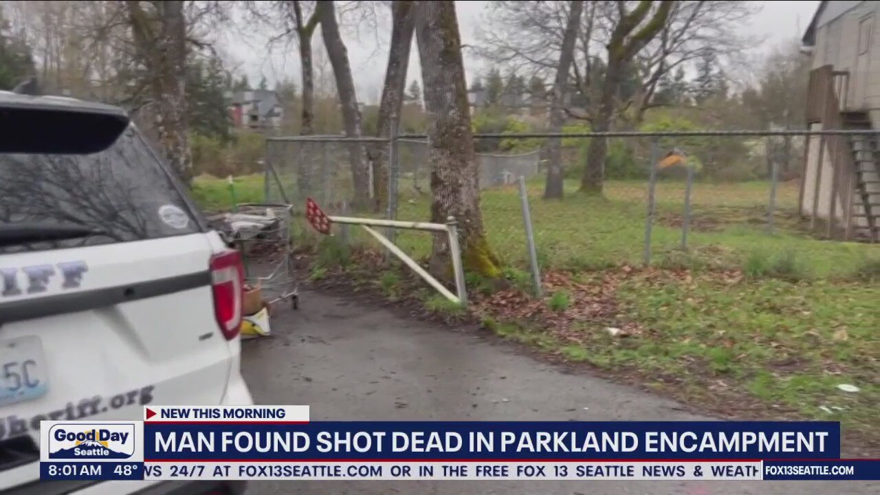 A 47-year-old was found dead inside his tent with multiple gunshot wounds.