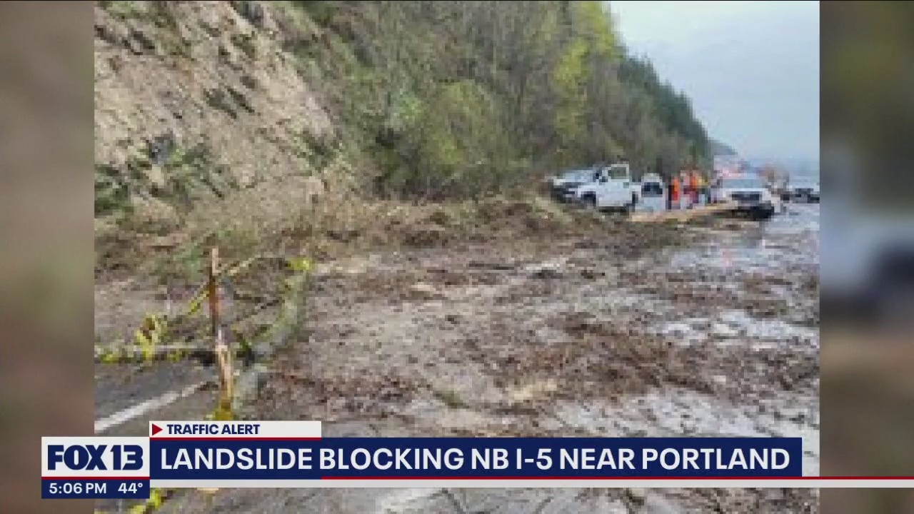 All NB lanes on I-5 near Vancouver blocked due to landslide, 2 cars stuck