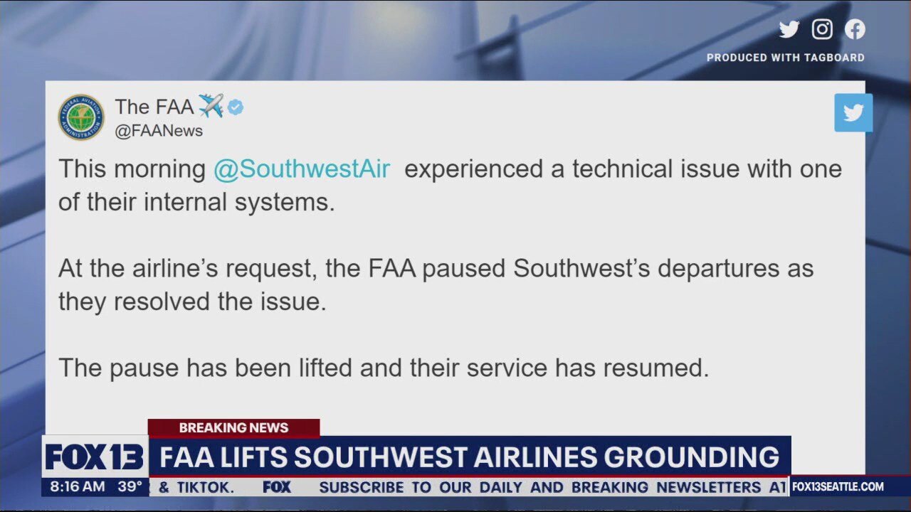 We just got an update to some breaking news on Tuesday. The FAA has lifted Southwest's nationwide grounding.