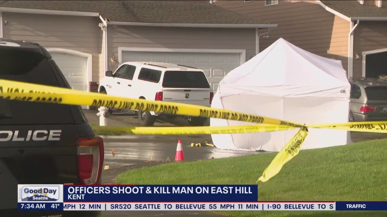The investigation continues this morning after police officers shot and killed a man in Kent's East Hill neighborhood.