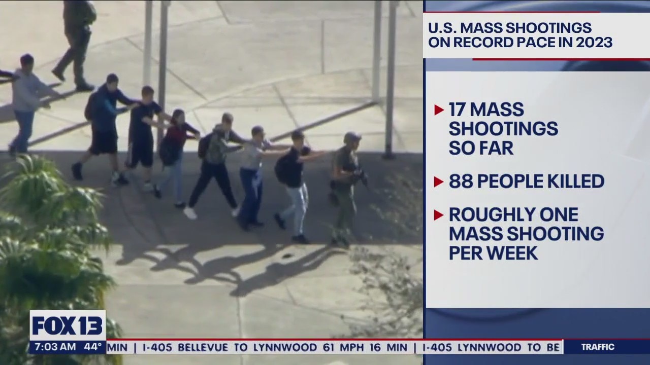 The United States is experiencing mass shootings at record pace this year. So far there have been 17 mass shootings in 2023, killing 88 people. That's roughly 1 mass shooting per week.