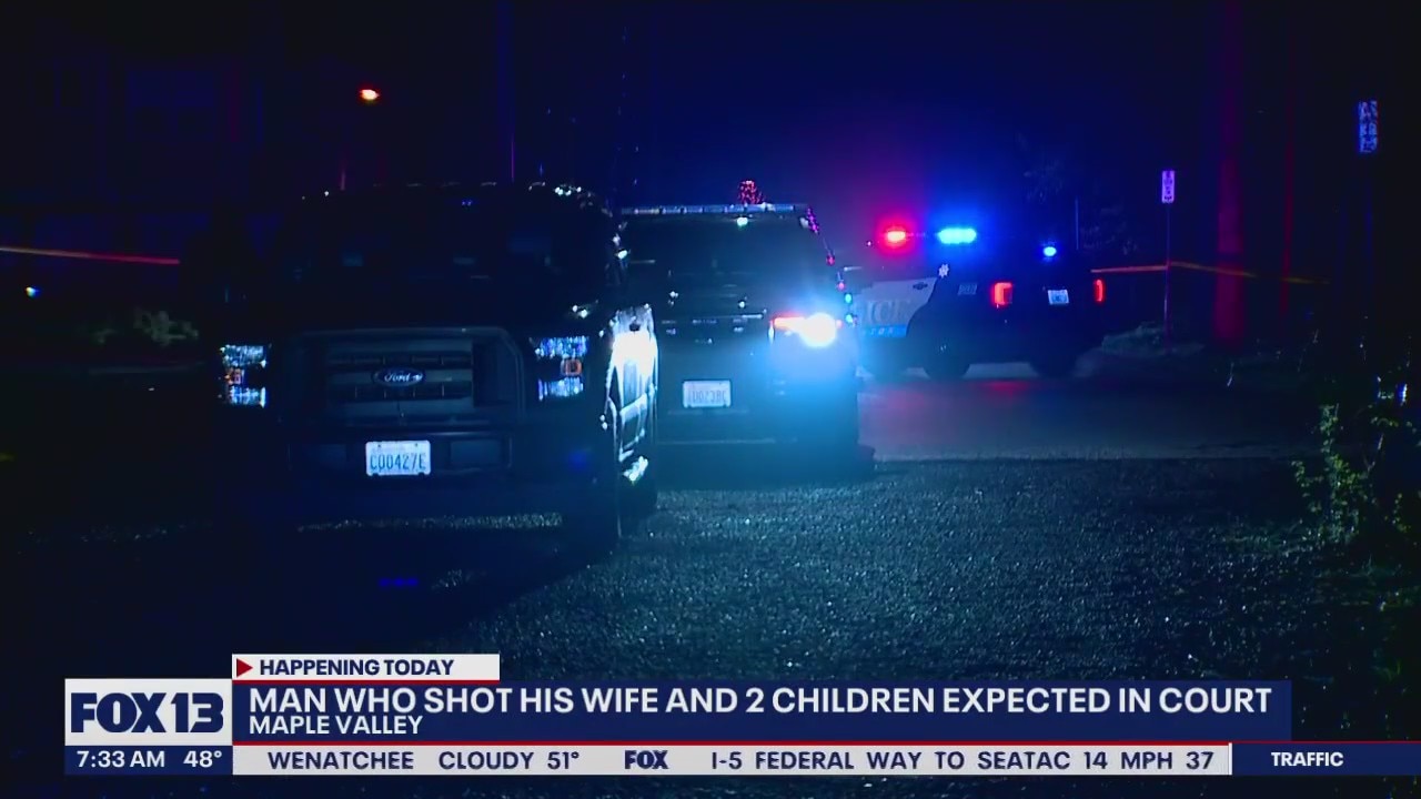 A Maple Valley man accused of shooting his wife and two kids is expected in court.